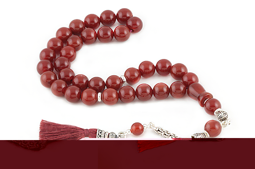 Agate (Carnelian) Prayer Beads with Sterling Silver components – Misbaha – Subha – Tasbih