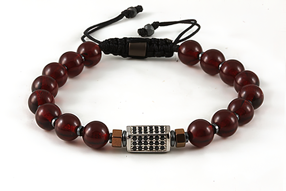 9mm amber bakelite beads & zirconia beaded hematite gemstone. Sliding mechanism adjusts to fit most wrists. All our products are supplied in a Stylish Jewelry Gift Box.