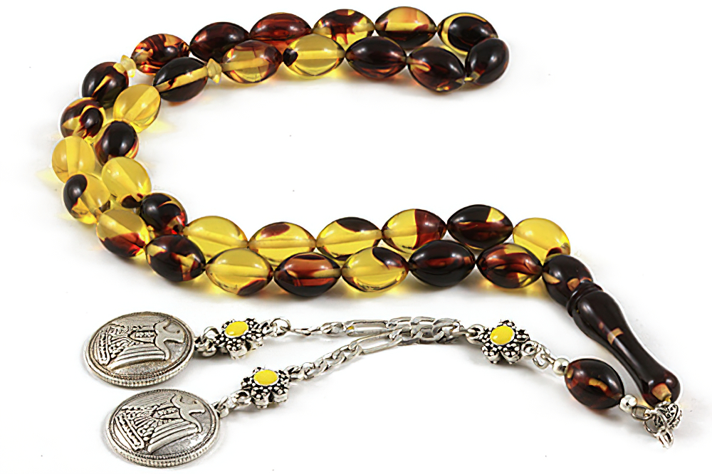 Handcrafted of 33 amber bakelite beads and handle. All prayer beads are supplied in a Stylish Jewelry Gift Box.