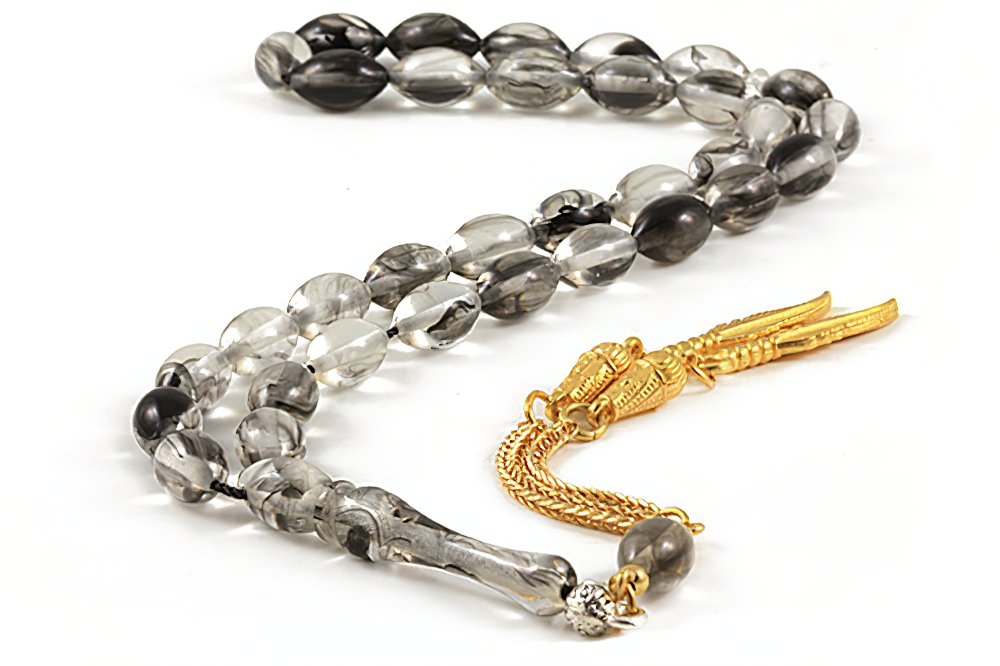 Handcrafted of 33 grey amber bakelite beads and handle. All prayer beads are supplied in a Stylish Jewelry Gift Box.