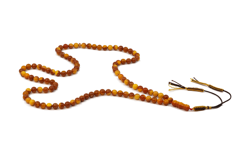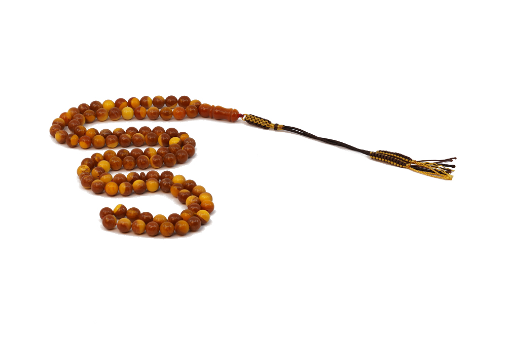 Handcrafted of 99 beads and handle made of Amber Powder. The spacing between the beads is around 2-3 beads wide. Free Express Shipping and handmade Luxury Gift Box.