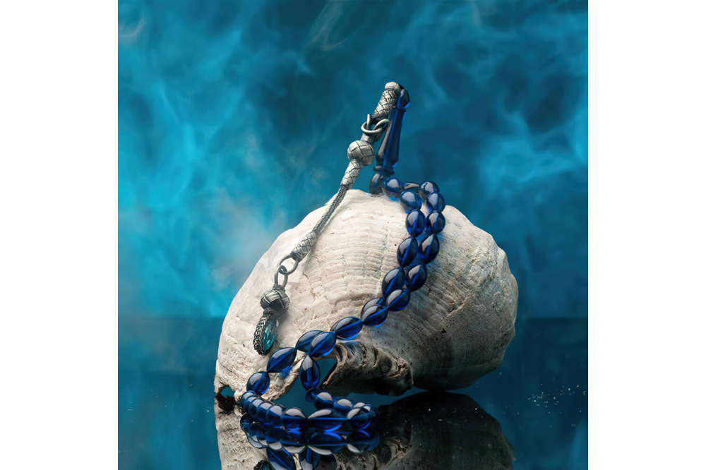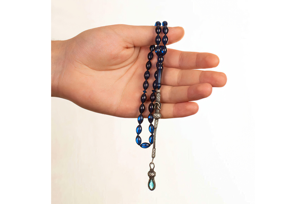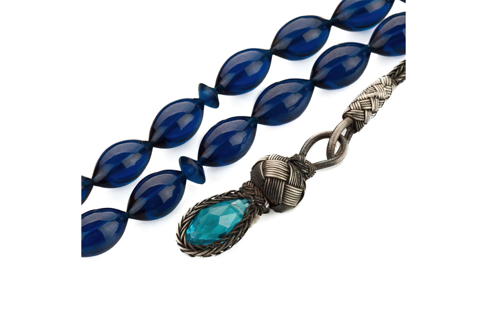 Blue Bakalite Prayer Beads (Misbaha – Sebha) With 999k Silver Tassel