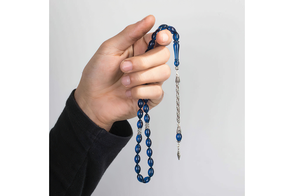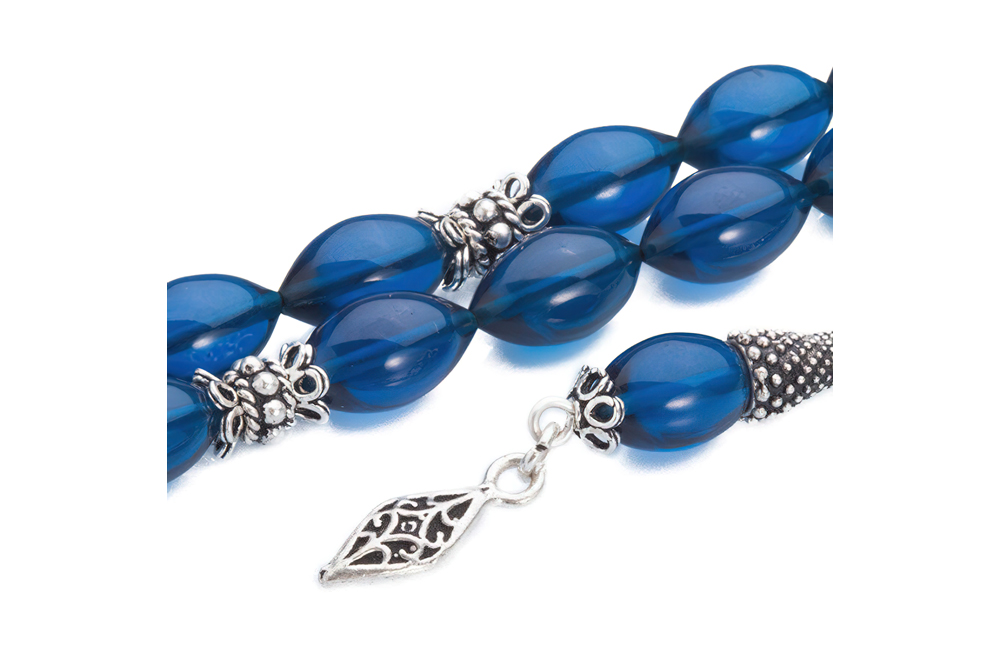 Blue Beaded Bakalite Prayer Beads (Misbaha – Sebha) With Leaf Style Tassel