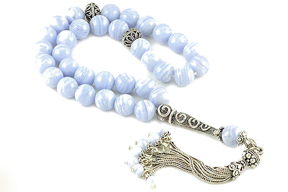 Blue Chalcedony Prayer Beads with Sterling Silver components – Misbaha – Subha – Tasbih