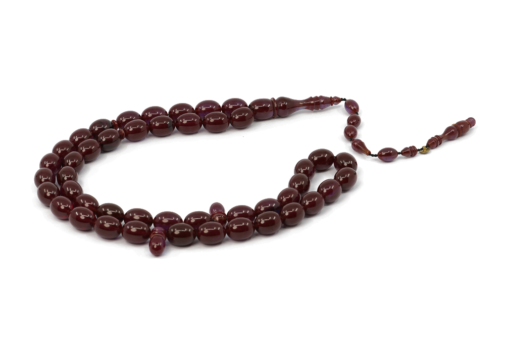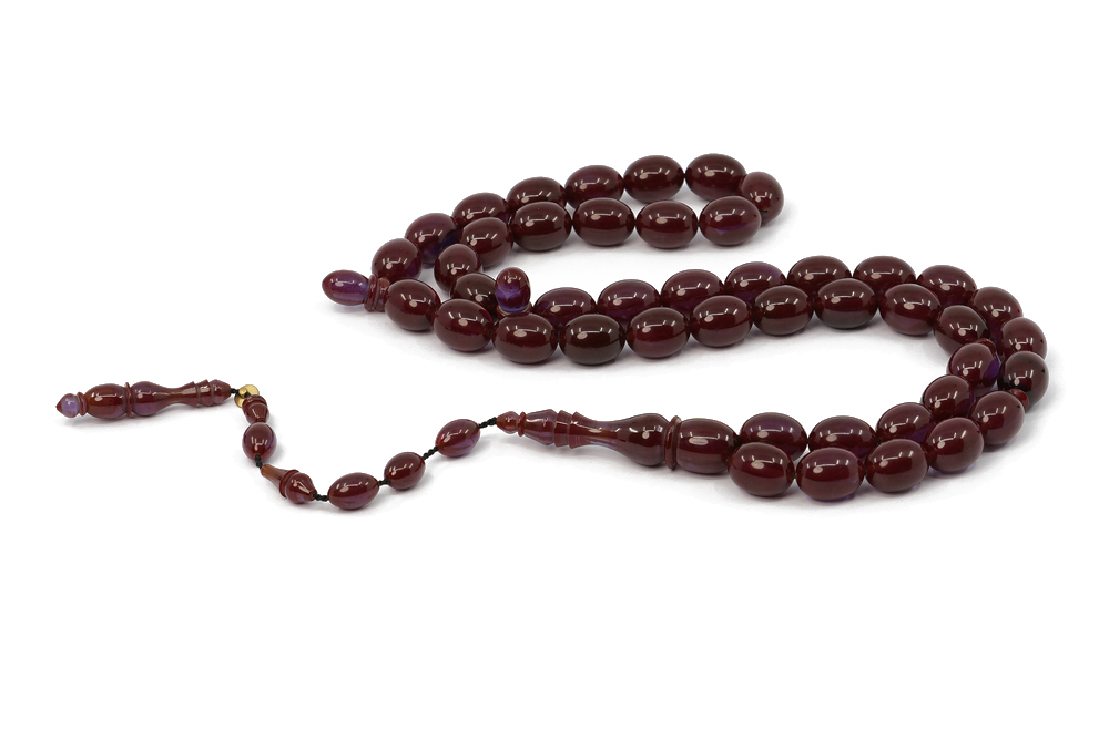 Material Description: Faturan is a mixture of natural amber, resins, and incense. This material was invented by an Arab named Faturan in the 17th century and it carried his name ever since. Its amazing deep color combinations coupled with the special weight, enchanting clicking sound and durability make Faturan one of the best materials for Prayer Beads.