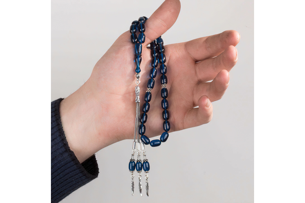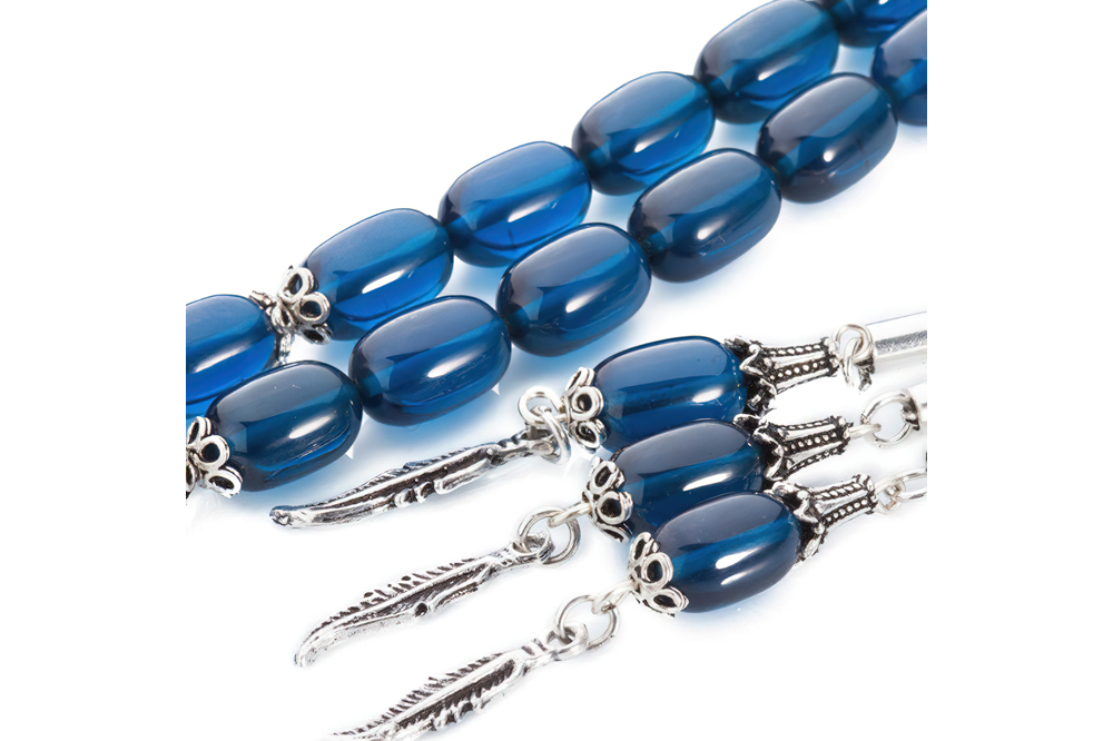Capsule Cut Blue Bakalite Prayer Beads (Misbaha – Sebha) With Three Tassels