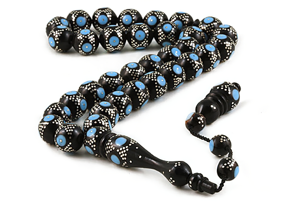 Handcrafted of 33 Indian coca wood beads inlaid with 925 silver (Sterling) and turquoise gemstone. Free of Charge Worldwide Delivery. All our products are supplied in a Stylish Jewelry Gift Box.