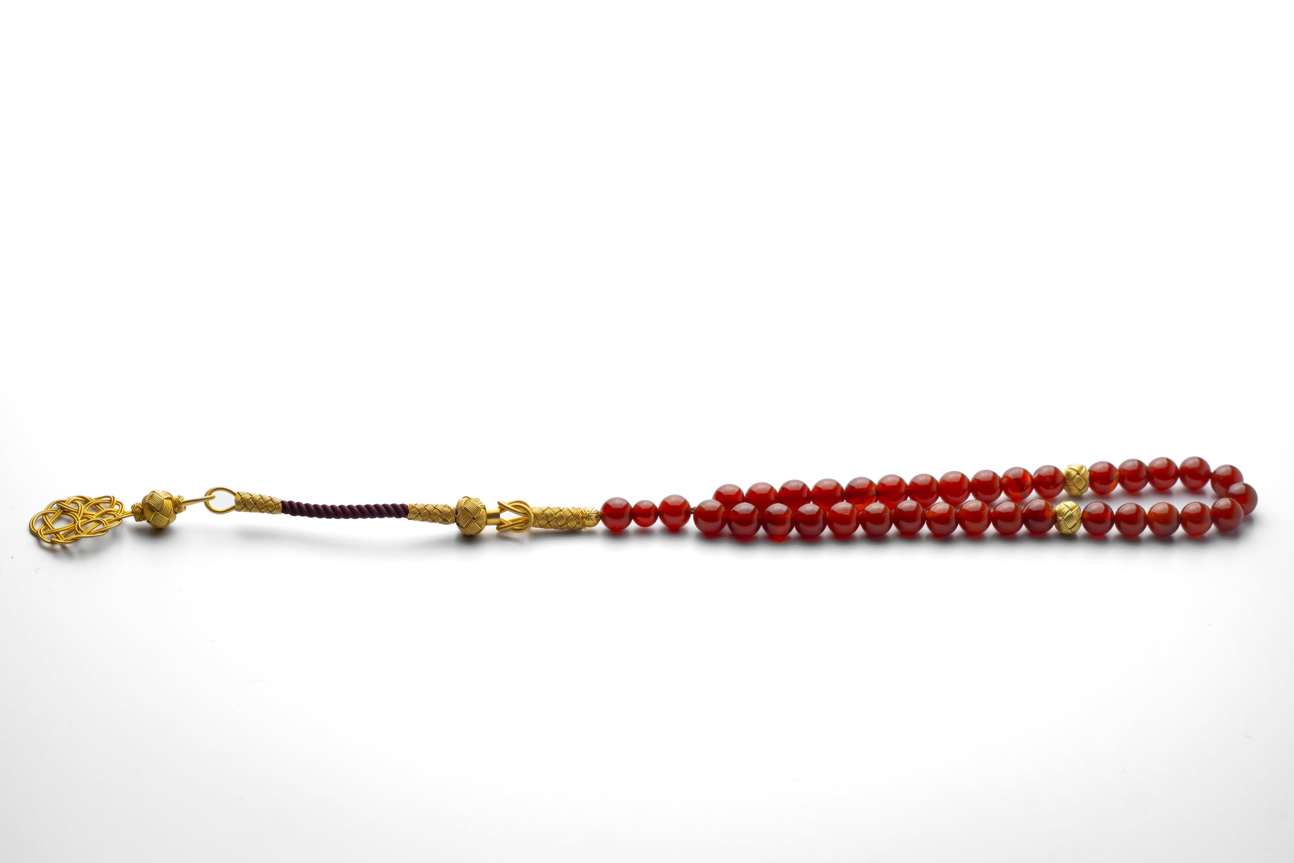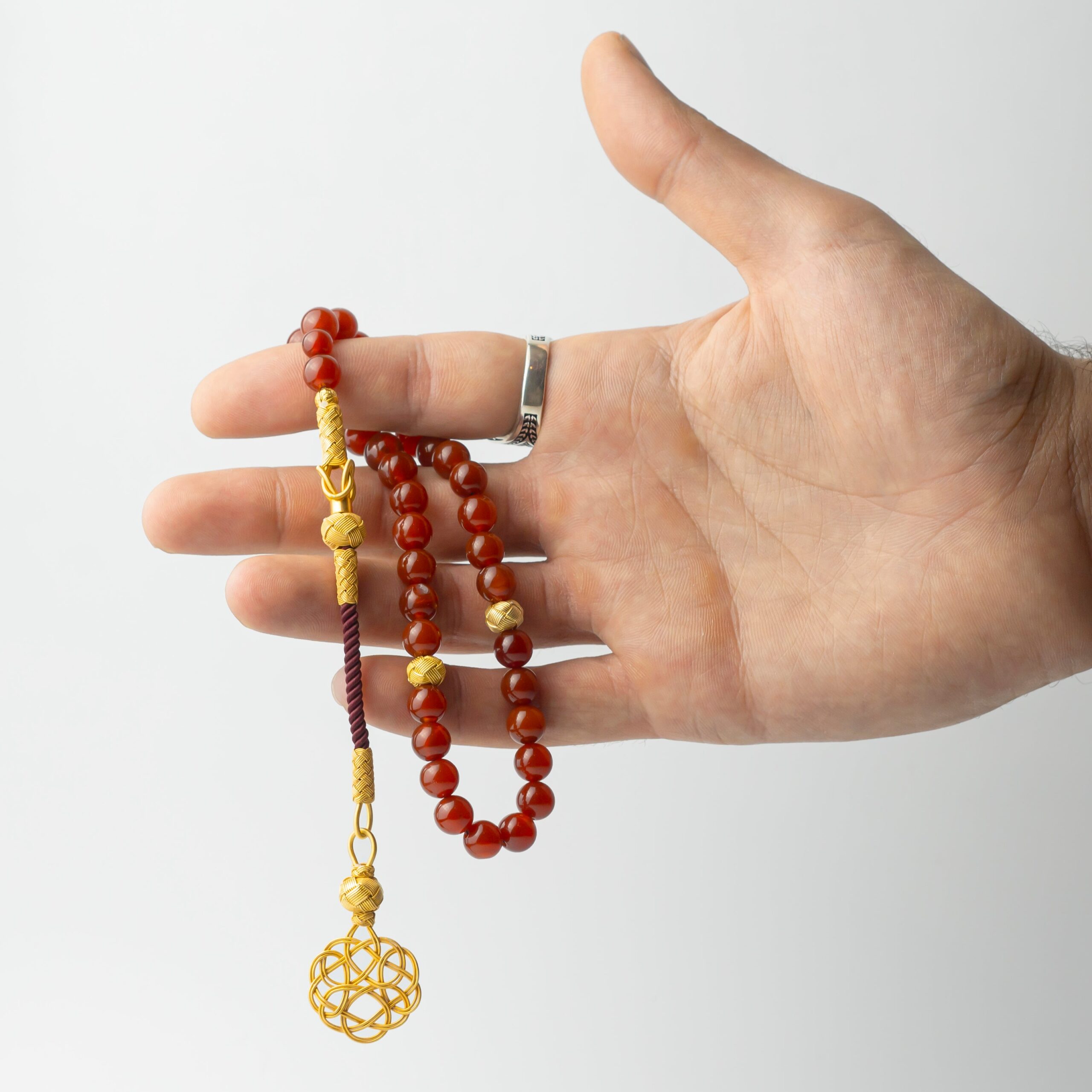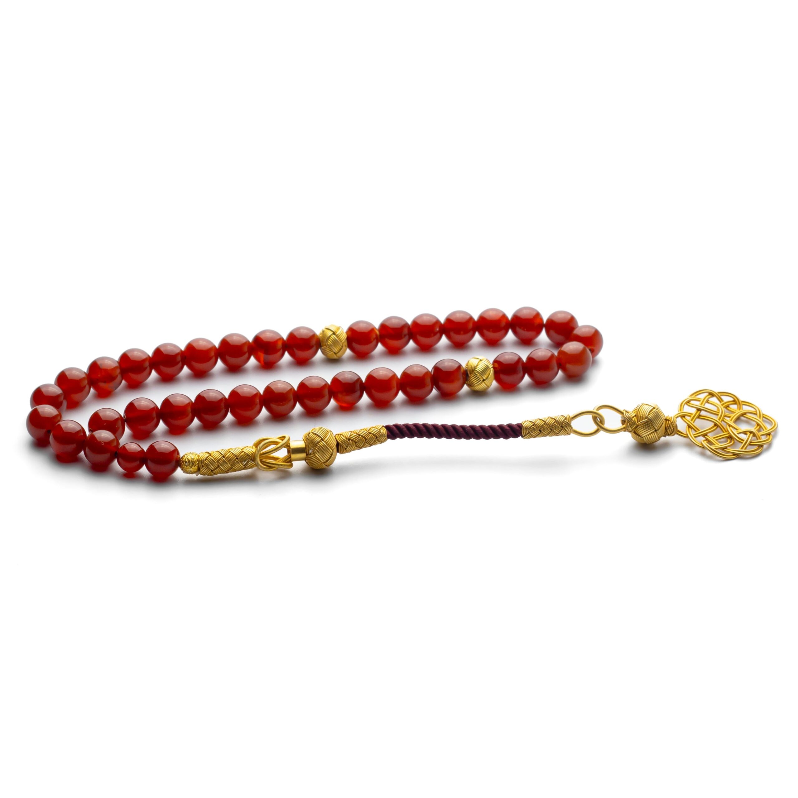 Red Agate Tasbih with Gold-Plated 1000 Sterling Silver Kazaz Tassel