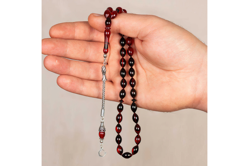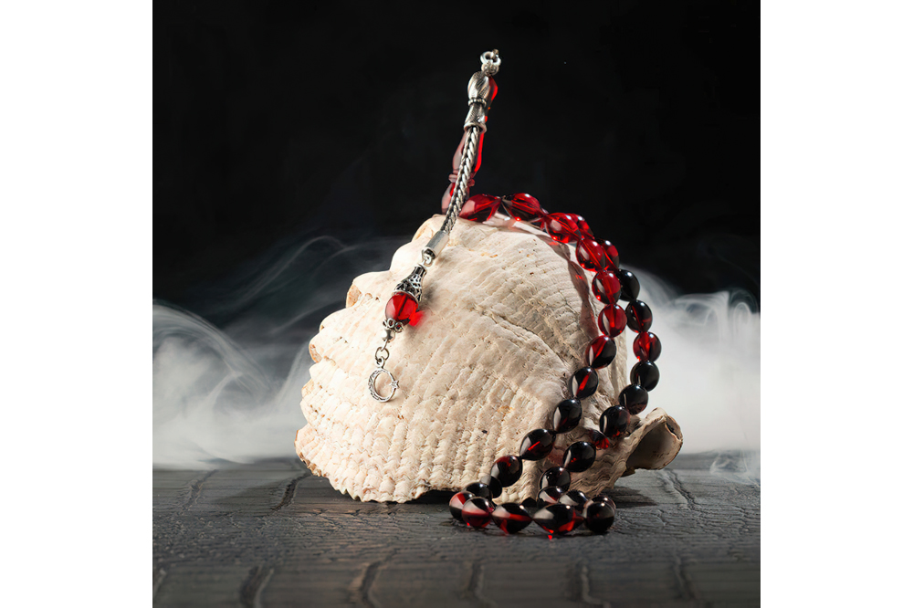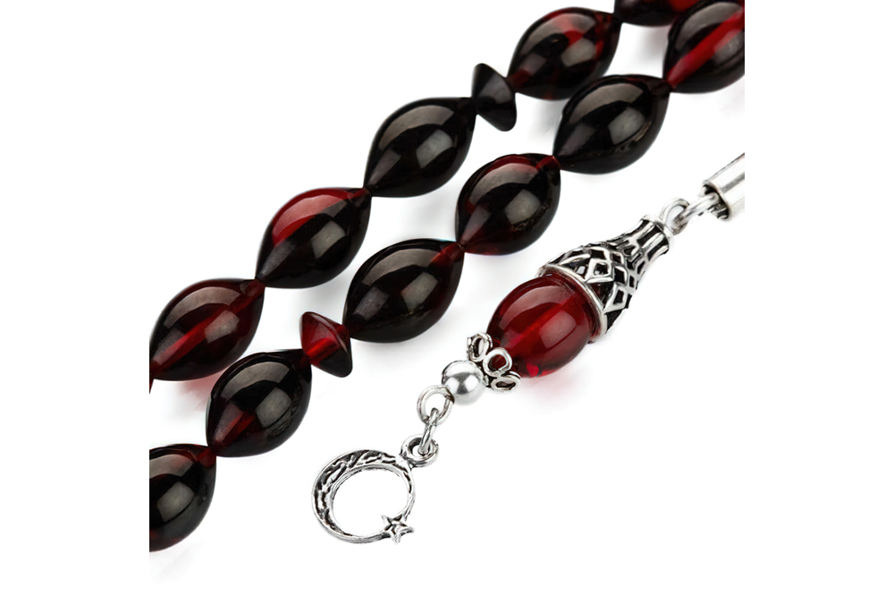Dark Red Prayer Beads (Misbaha – Sebha) With 925 Sterling Silver Crescent Star Tassel