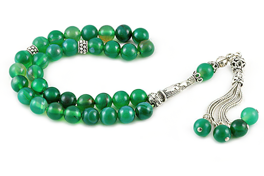 Green Agate Prayer Beads with Sterling Silver components – Misbaha – Subha – Tasbih