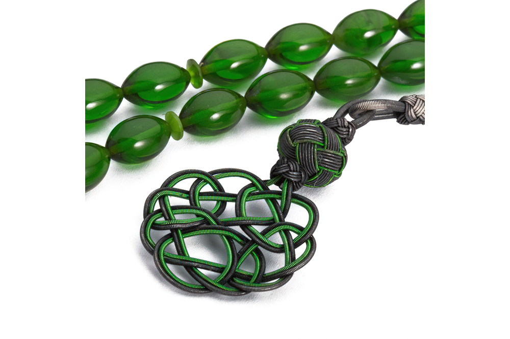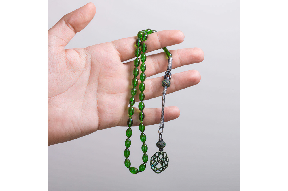 Green Beaded Bakalite Prayer Beads (Misbaha – Sebha) With Silver Tassel