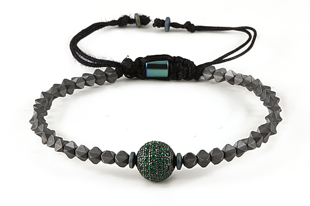 Handcrafted of high grade hematite gemstone beads and zirconia. Sliding mechanism adjusts to fit most wrists. All our products are supplied in a Stylish Jewelry Gift Box.