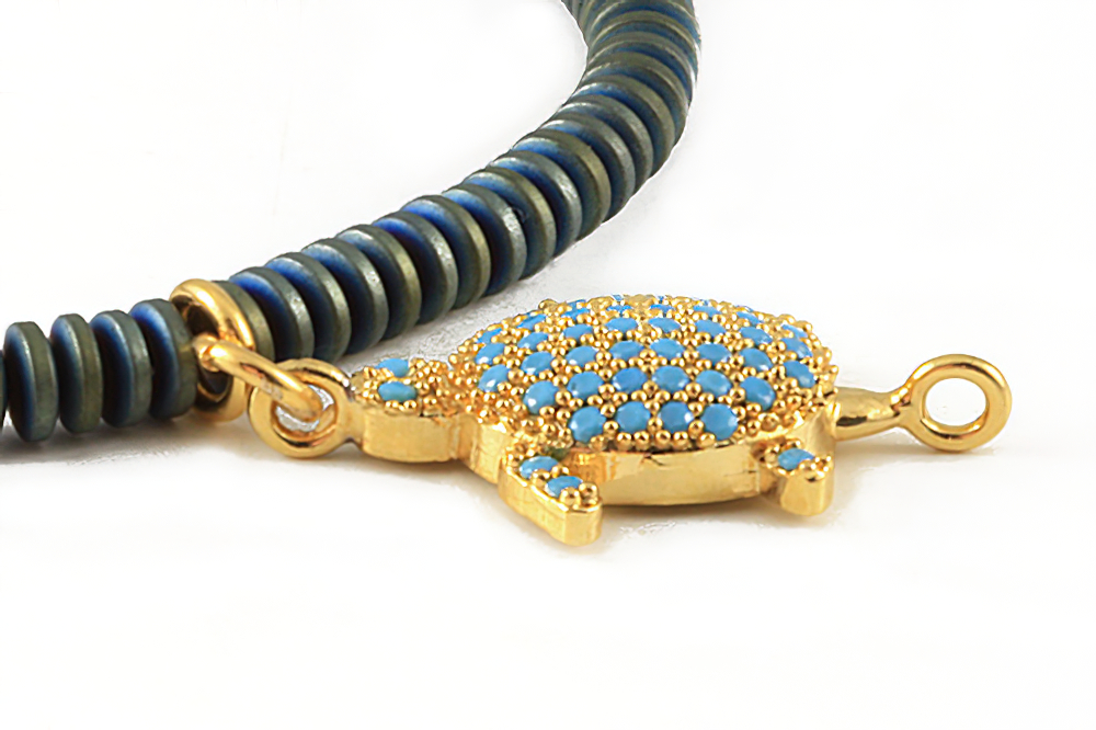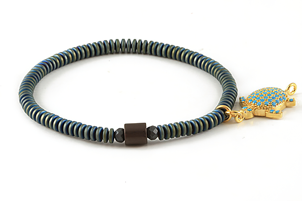 Handcrafted of high grade hematite gemstone beads with zirconia beaded pendant. The beads are strung together with an elastic tie and this size fits most wrists. All our products are supplied in a Stylish Jewelry Gift Box.