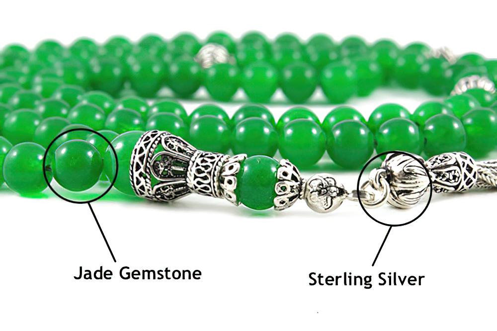 Handcrafted of 108 high grade genuine jade beads, Sterling silver seperators, handle and tassel. Free of Charge Worldwide Delivery. All our products are supplied in a Stylish Jewelry Gift Box.