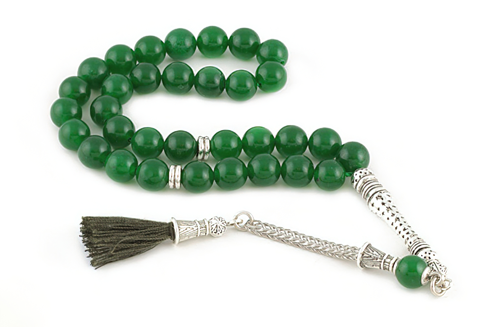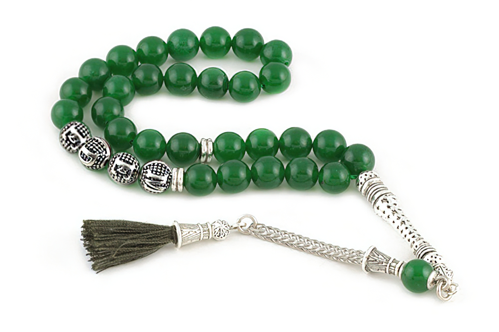 8mm 33 count genuine jade beads. This Prayer Beads can be personalized with owner?s name written on metal beads. The spacing between the beads is around 2-3 beads wide. All our products are supplied in a Stylish Jewelry Gift Box.