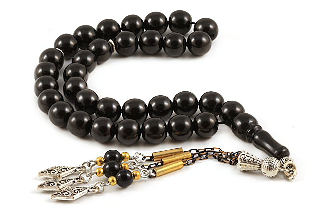 Handcrafted of 33 genuine Russian jet stone (black amber) beads. The spacing between the beads is around 2-3 beads wide. All our products are supplied in a Stylish Jewelry Gift Box.