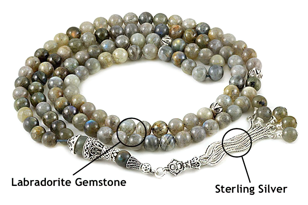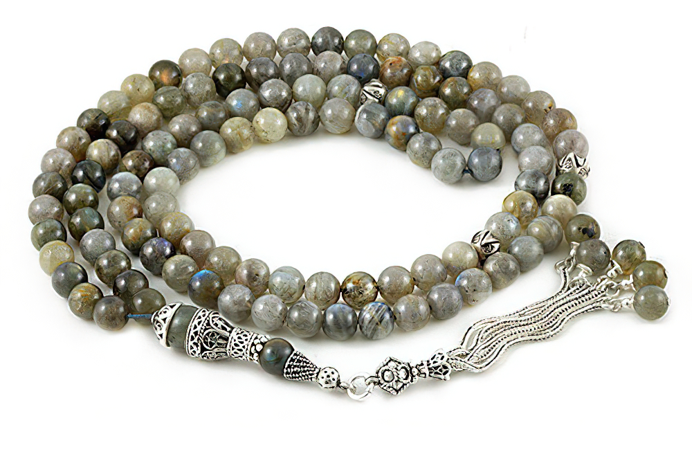 Labradonite increases ability to concentrate and focus. As a result, labradonite is an ideal choice for situations which require extreme focus, such as tests and exams. Prayer Beads Handcrafted of Labradonite is very useful for objec-tive analysis of the past. It’s used for spiritual growth.