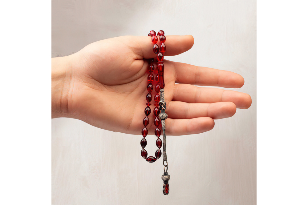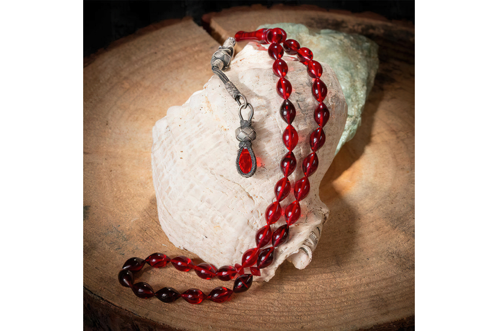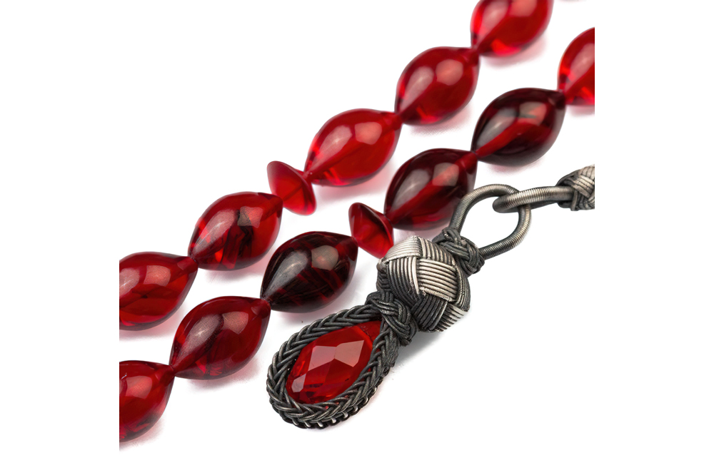 Mixed Red Wavy Bakalite Prayer Beads (Misbaha – Sebha) With Pure 999k Silver Tassel