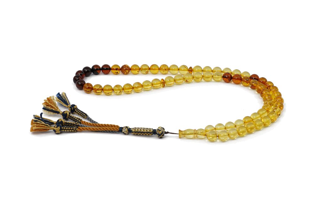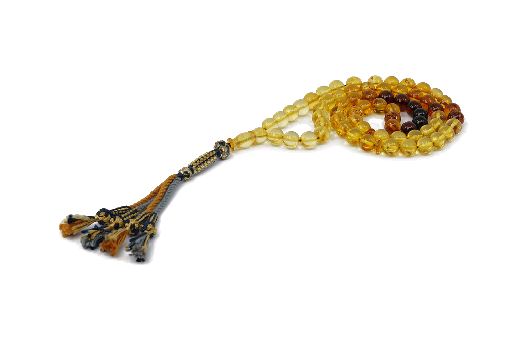 Material Description: Faturan is a mixture of natural amber, resins, and incense. This material was invented by an Arab named Faturan in the 17th century and it carried his name ever since. Its amazing deep color combinations coupled with the special weight, enchanting clicking sound and durability make Faturan one of the best materials for Prayer Beads.