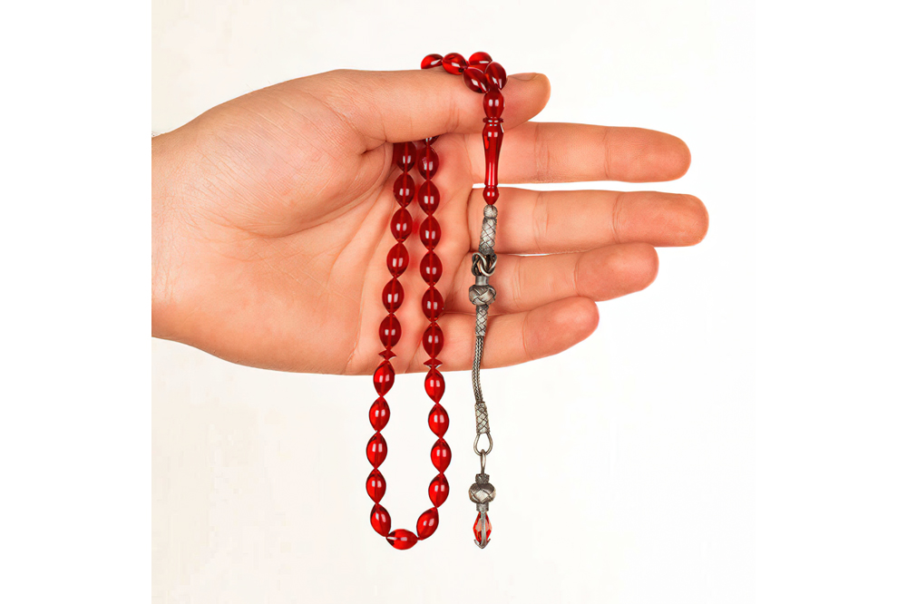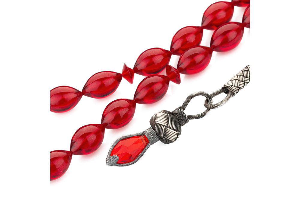 Red Bakalite Prayer Beads (Misbaha – Sebha) With 999k Silver Tassel