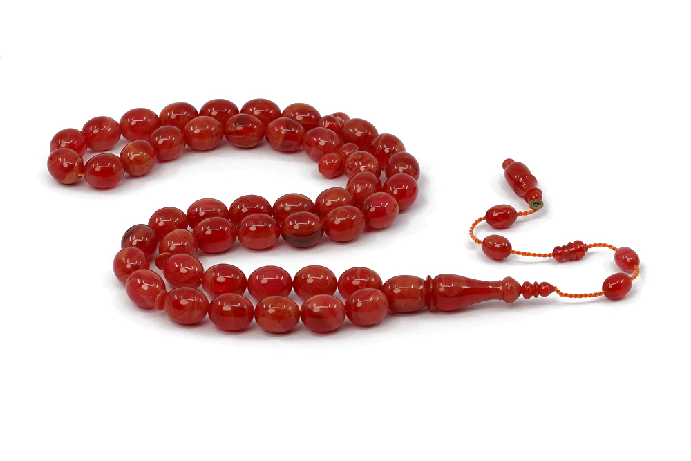 Material Description: Faturan is a mixture of natural amber, resins, and incense. This material was invented by an Arab named Faturan in the 17th century and it carried his name ever since. Its amazing deep color combinations coupled with the special weight, enchanting clicking sound and durability make Faturan one of the best materials for Prayer Beads.