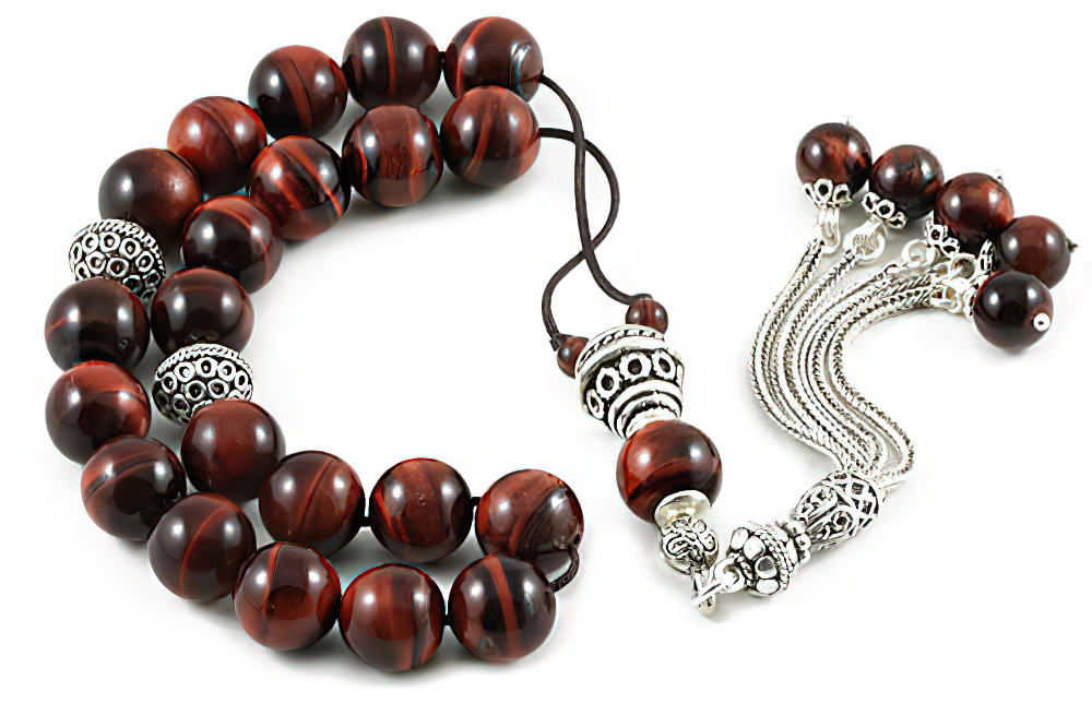 Red Tiger’s Eye Worry Beads with Sterling Silver components – Misbaha