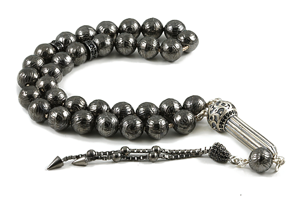 Handcrafted of 33 oxidized – 925 silver (Sterling) beads, chain, zirconia beaded spacers, handle and tassel. Free of Charge Worldwide Delivery. All our products are supplied in a Stylish Jewelry Gift Box.
