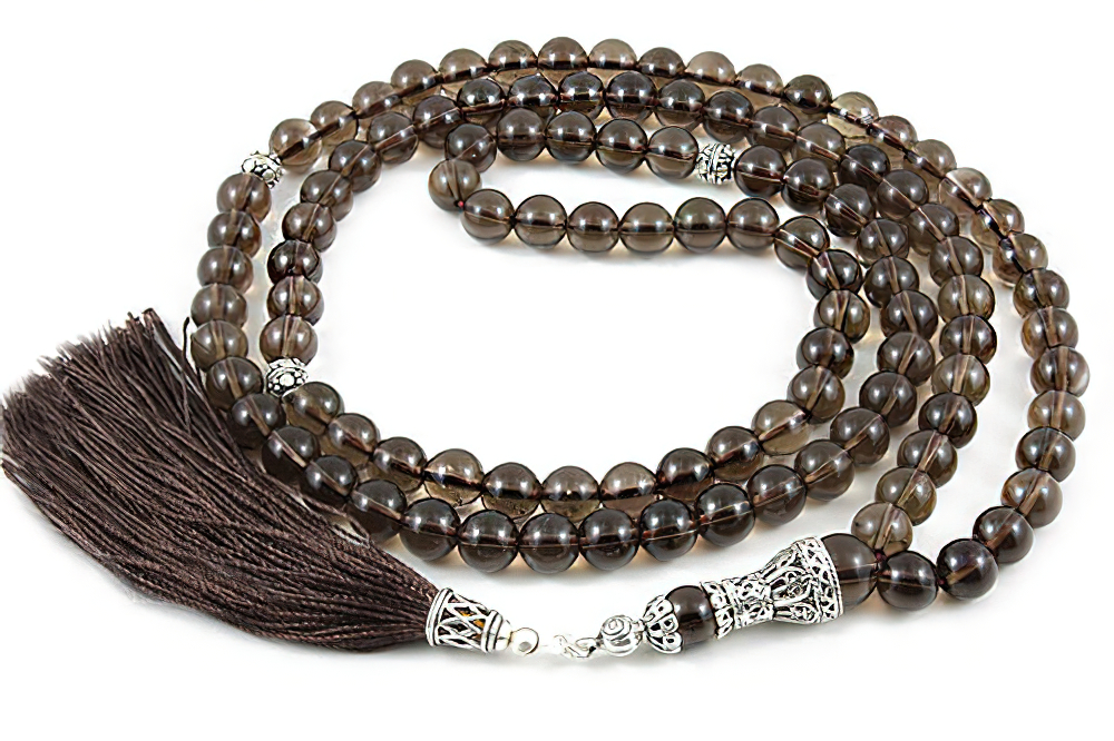 Handcrafted of 108 high grade genuine smokey quartz beads, Sterling silver seperators, handle and natural cotton tassel. FREE handHandcrafted gift box.