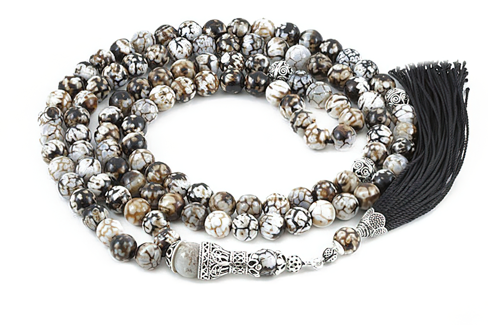 Handcrafted of 108 high grade genuine Tibetan agate beads, Sterling silver seperators, handle and natural cotton tassel. Free of Charge Worldwide Delivery. All our products are supplied in a Stylish Jewelry Gift Box.