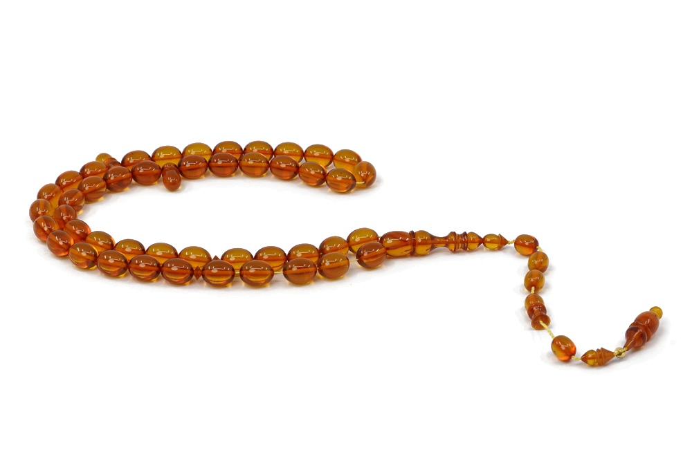 Material Description: Faturan is a mixture of natural amber, resins, and incense. This material was invented by an Arab named Faturan in the 17th century and it carried his name ever since. Its amazing deep color combinations coupled with the special weight, enchanting clicking sound and durability make Faturan one of the best materials for Prayer Beads.