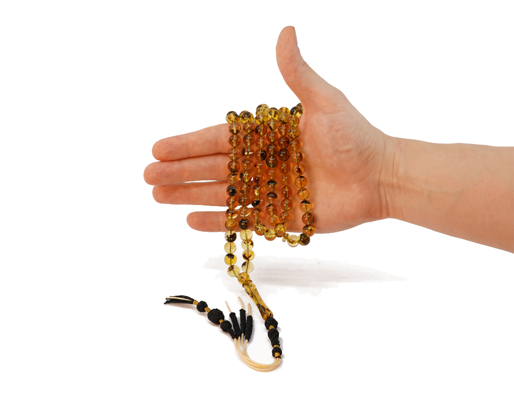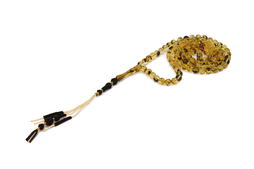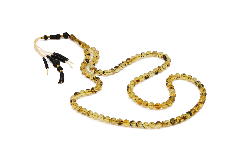Handcrafted of 99 NATURAL yellow Amber beads with Inclusions, Amber Imam and cotton tassel. The spacing between the beads is around 2-3 beads wide. Free handmade luxury gift box.