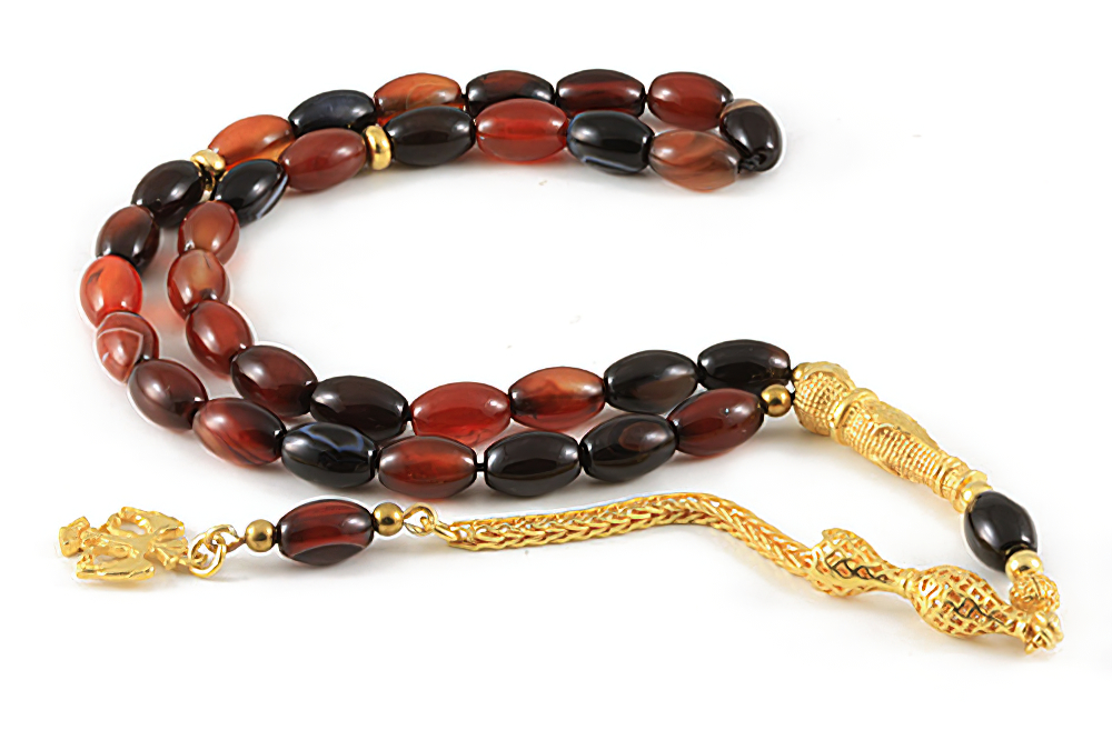 Yemen Agate Prayer Beads with Sterling Silver Components – Misbaha – Subha – Tasbih