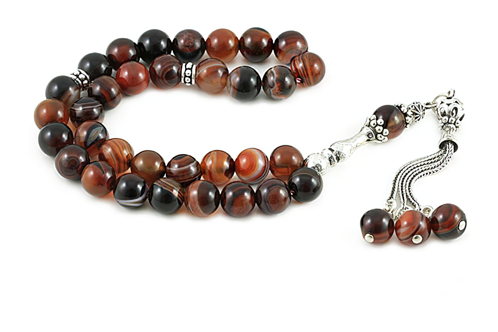 Yemen Agate Prayer Beads with Sterling Silver components – Misbaha – Subha – Tasbih